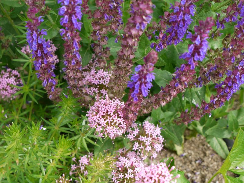 Eine farbenfrohe und heitere Mischung für sonnige bis halbschattige Standorte mit frischgrünem Laub und guter Bodendeckung. Zur Hauptblütezeit dominieren rosa und blaue Töne von Storchschnabel und Salbei das Erscheinungsbild. Den Herbstaspekt sichern die Gerüststauden Sesleria und Frikart´s Aster.