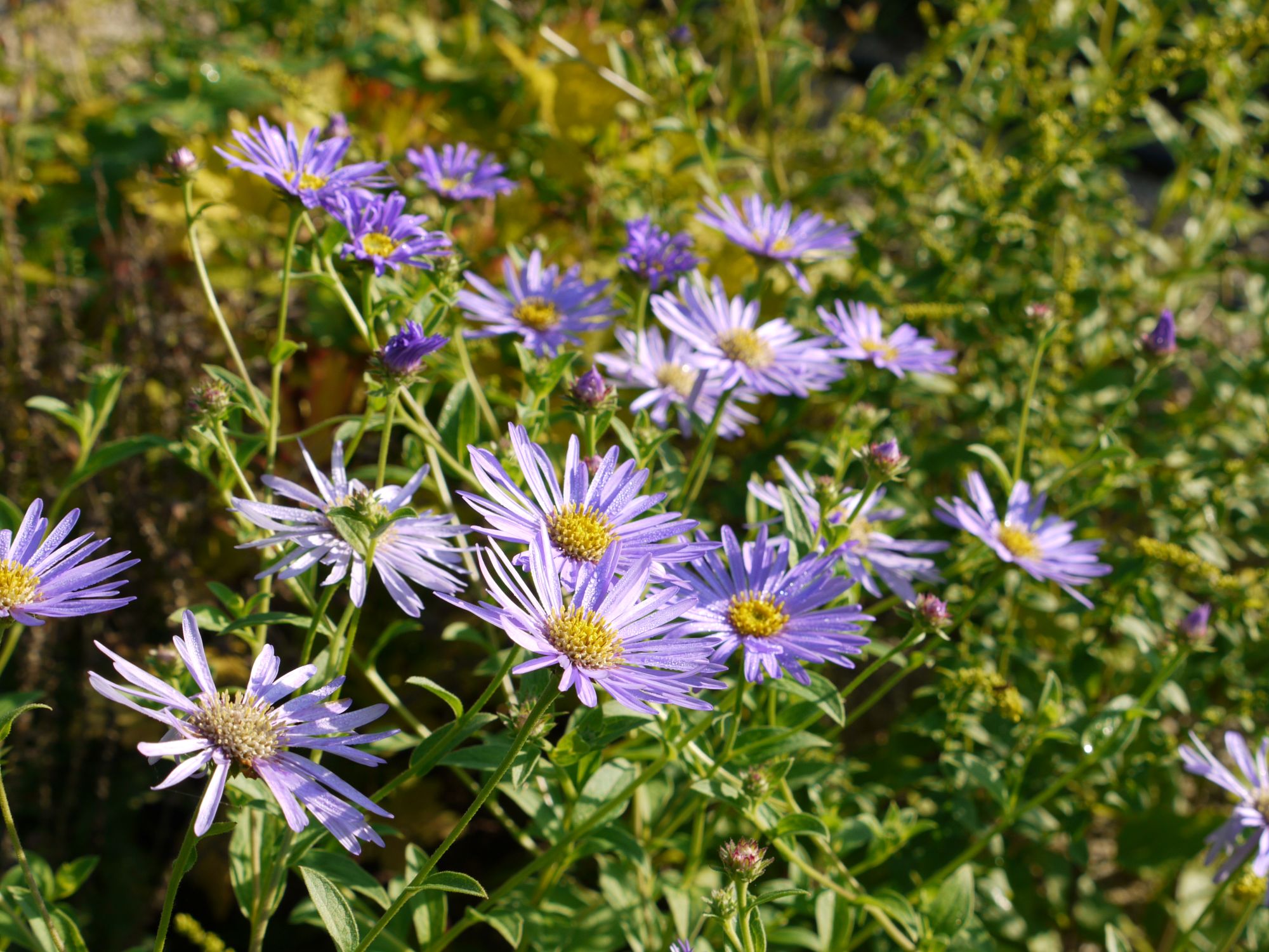 | Aster x frikartii 'Mönch' | 30 | große violettblaue Blüten im August bis September, Pflanzung möglichst im Frühjahr | Aster x frikartii 'Wunder von Stäfa' |