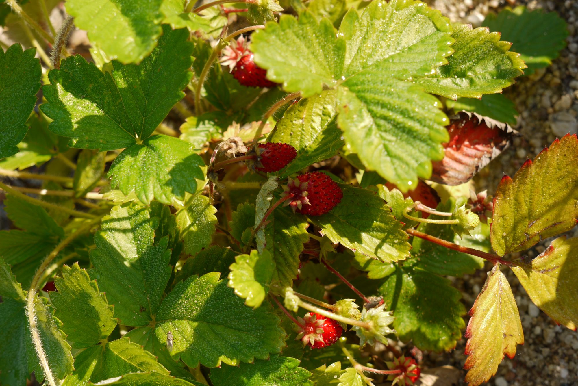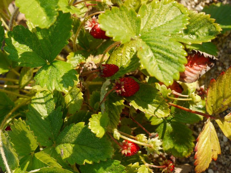 | Fragaria vesca var. vesca | 40 | heimische Wildstaude, mit Ranken umherwandernd, nicht verdrängend, leckere aromatische Früchte | |